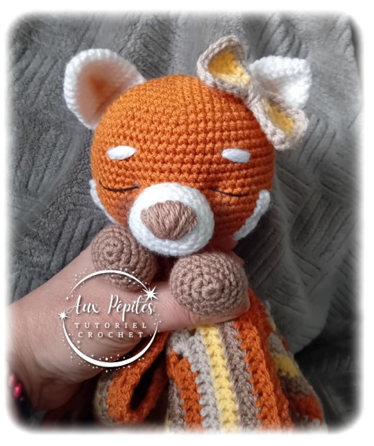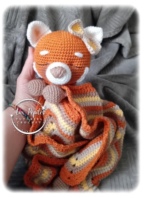 Attention : Ceci n’est pas le produit fini ! Notez bien qu’il s’agit d’un tutoriel au crochet (fichier en format PDF) afin de réaliser par vos soins le Panda roux endormi (doudou étoile)